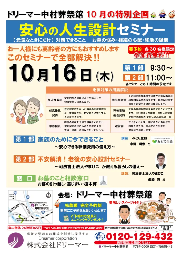 【イベント】10/16ドリーマー中村葬祭館:安心の人生設計セミナー